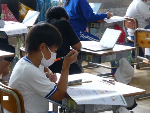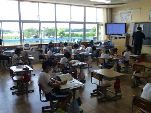 4年生は国語の授業で「一つの花」の学習中でした。戦争の悲しさについて学び、そこから平和を強く求める意識を育てる学習です。特に夏休みには終戦記念日もあることから、戦争についてのテレビ放送を見る機会も増えてくるかと思います。そうした様々な機会を通して、子どもたちの平和を願う気持ちがよりいっそう育っていくことを願っています。