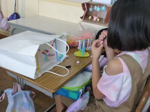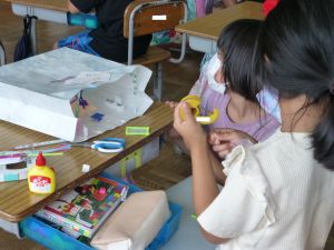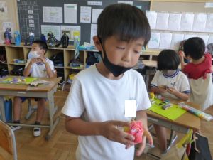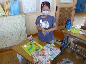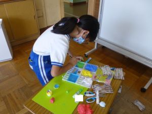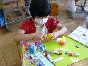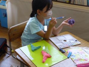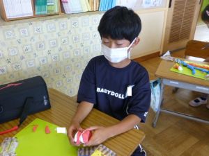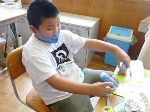2年生の図工は紙ねんどでの捜索活動です。子どもの創作活動は、見ていてわくわくしますね。色とりどりに、思い思いに作品づくりに取り組んでいました。