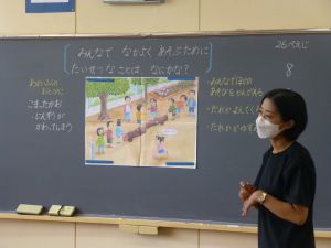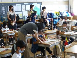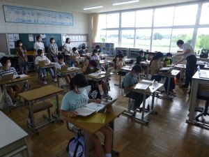 今日は、市の教育委員会からお客様をお迎えして、各学年の授業を公開しました。授業後には、講師の先生からご指導をいただきました。本校として、こうしたご指導を生かして、今後も授業改善に努めていきます。