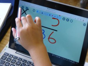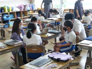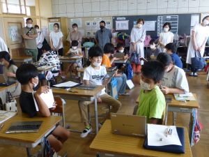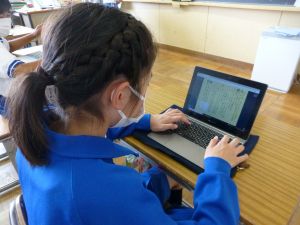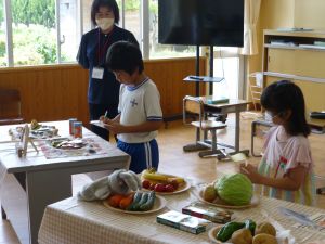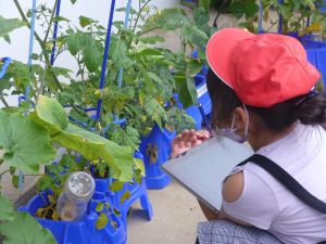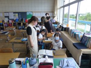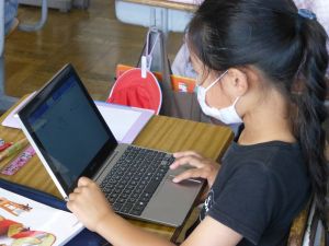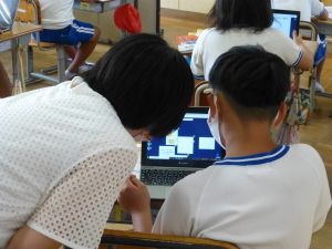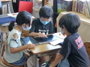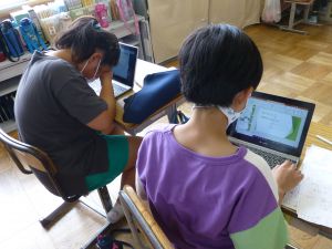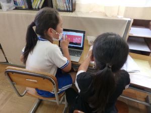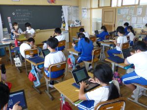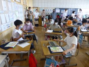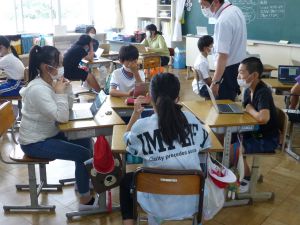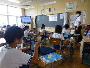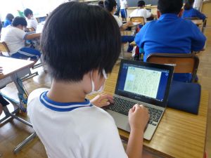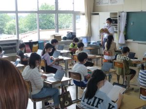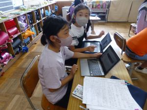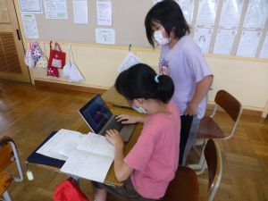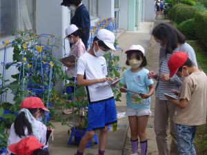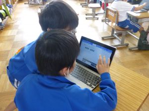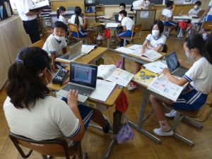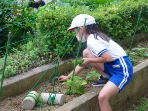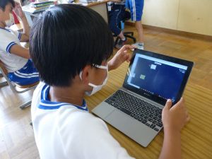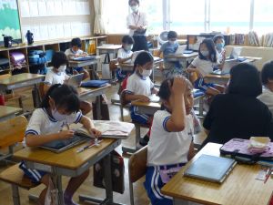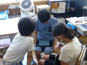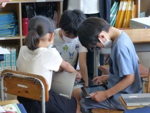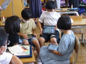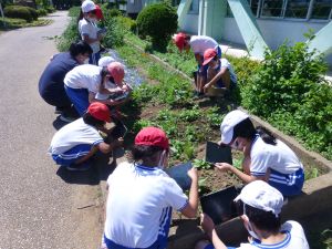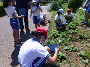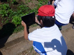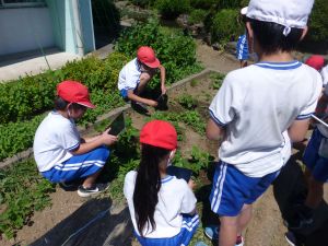 3年生の植物の観察です。育てている野菜の写真を撮り、前回の観察からの成長の様子を調べます。3年生は、昨日の研修でも講師の先生から「端末を使いこなしていますね」という言葉をいただいています。やはり子どもは、大人よりも適応が早いんだなと実感させられる毎日です。