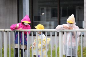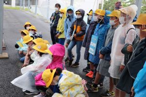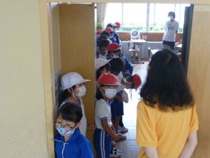 2年生が静かにならんでいる・・・そうか、今から体育なのですね。