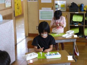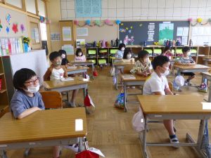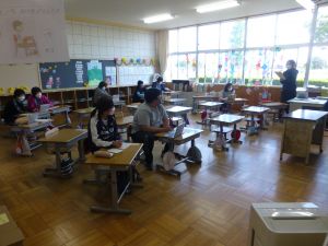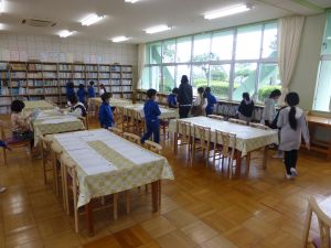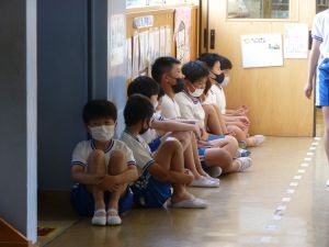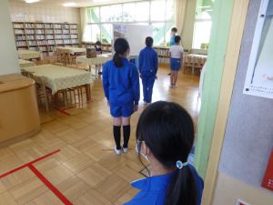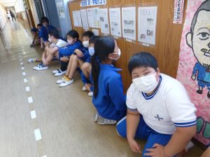 なお今日は、9:00から内科検診がありました。あとで結果が配付されますので、ご覧になってください。(写真は、6年生が順番を待っている様子です。)
