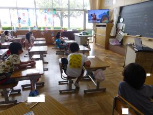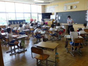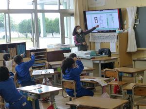 4年生は社会。水についての学習で、今日はちょうど森に雨水が貯えられることについて触れているところでした。