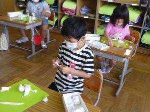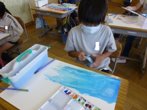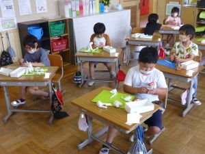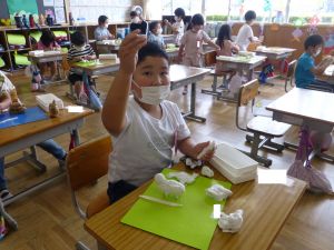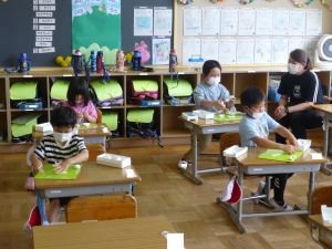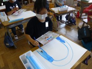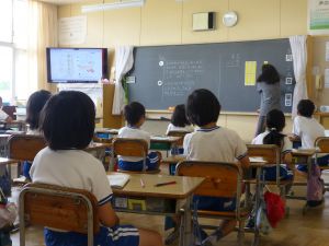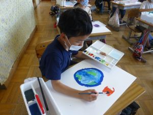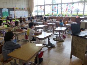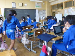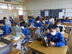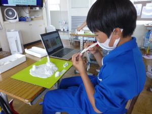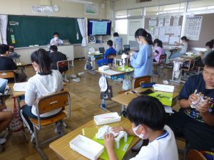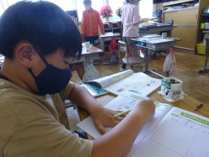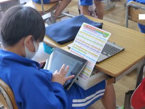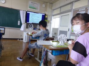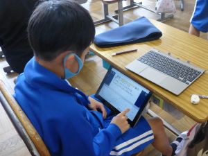 5年生は理科の学習中です。このあとタブレットを取り出して、個別に観察してまとめたりしていました。