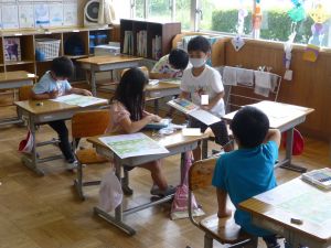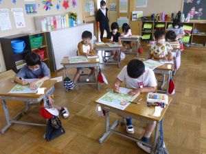 6年生はテスト中です。静寂の中、鉛筆で解答する音だけが聞こえてきました。