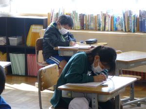 静かな中で漢字ドリルなどに取り組んでいます。 話し合ったり協力したりといった学習も大切ですが,こうした基礎基本の定着のための学習もやはり同じように大切です。 3年生の漢字はしっかり身についたでしょうか。