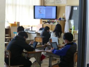 5年生は国語で,班ごとに協力し合って学習しているようです。また,積極的にタブレットを使って学習が進められています。