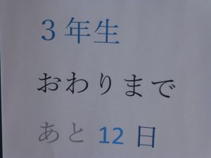 このような表示を見つけました。こういうものを目にすると,学年末,つまり学年のまとめの時期なんだな~と感じます。今の学年がもうすぐ終わるラストスパートの時期です。