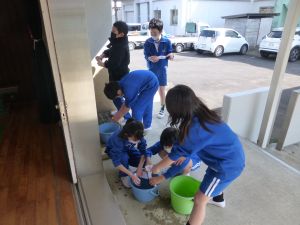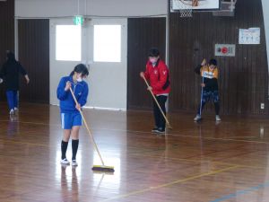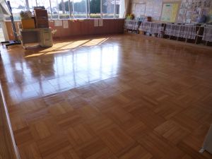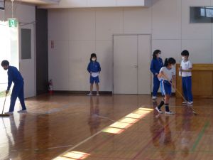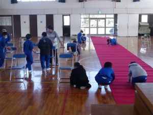 写真の教室の床がピカピカに光っているのが分かるでしょうか。これはワックスをかけたからです。 午後,4・5年生は体育館の式場を整えているちょうどその時,6年生は奉仕作業として特別教室等の清掃と,床のワックスがけを行ってくれました。 6年間を過ごしてきたこの旭西小学校。各教科の学習時に,理科室や音楽室などをこれまで何回も使ってきました。その6年間を過ごしてきた学校への恩返しという意味合いで行われた今回の作業。お陰様でこんなにきれいになりました。6年生のみなさん,どうもありがとう。 こうした活動を経て,今日もまたひとつ卒業に近づきました。 午後は4・5年生が卒業式の式場作成を行いました。5校時は主に4年生が体育館の清掃と,必要な備品を用意しました。6校時は5年生がいすを並べたり,ふいたり,紅白幕を完成させたりしました。卒業式に向けて,準備が着々と進んでいます。 明日は6年生を送る会。5年生がこれまで急ピッチで準備を進めてくれました。4・5年生は,4月からは旭西小学校を支える高学年です。こうした活動を通じて徐々に学校を支える高学年・リーダーとしての自覚が芽生えてくるのではないかと考えています。