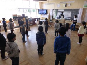 今後は故郷に帰られるということで,今後のコナー先生のご活躍をお祈りしたいと思います。 本日下校時,新しい登校班での登下校がスタートしました。これまで主に6年生が担ってきてくれた班長・副班長等の役割を,5年生を中心とする下学年児童が担うことになります。 下校時に,校庭に新しい班で整列して,各地区の担当教員が各班のメンバーと朝の集合時間等を確認し,交通安全担当の教員からお話がありました。
