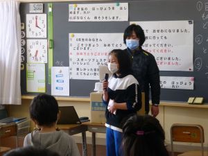 今年度,外国語・外国語活動の授業で週2日ずつお世話になりましたALTのコナー先生が,本日旭西小での最後の勤務を迎えました。 コナー先生は明るく穏やかで,児童にも我々職員にも親しまれ,毎回楽しい外国語の授業をしてくださいました。今年度は臨時休業期間もありましたが,オンラインで各ご家庭とつないでの授業にも積極的に協力してくださいました。 授業の初めのコナー先生の「Let’s study English!」をもう聞くことができないと思うと大変さみしい思いでいっぱいです。