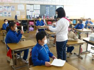 新班長・副班長には,学校の安心安全な登下校に関してとても大きな役割を担ってもらうことになります。今までと同じ登下校に違いはないのですが,明日からは「自分が班の見本になる」「班の登下校の安全を自分が守るんだ」という意識をもって,今までとちょっとだけちがった新鮮な気持ちで登下校して欲しいと思います。 なお,卒業を間近に控えた6年生は,班の一番後ろに並んでの登下校となります。これまで,登下校の際に下級生の面倒をよく見てくれて,本当にありがとうございました。旭西小への登校は残り少なくなりましたが,新しい班の班長・副班長がしっかり班をリードできるように,班の最後尾からしっかり見守ってもらえたらうれしいです。 今朝3年生の教室をのぞいてみると・・・