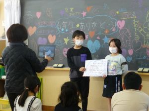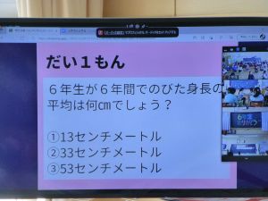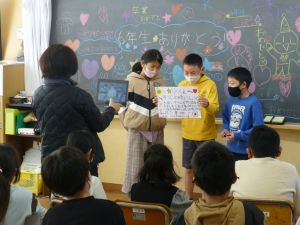 今回の6年生を送る会は,新型コロナウイルス感染対策として,初めてZOOMを活用しての実施となりました。画面を通してという新しい形での試みに,大変新鮮な気持ちで一人一人が向き合い,特に各学年から6年生へのメッセージやクイズ等の出し物を通して6年生が楽しむことができ,画面越しではありますが旭西小学校全体が卒業生と一緒に楽しむ時間を共有することができました。コロナがあったために今回はこのような形となりましたが,私たち自身の工夫次第でこんなに学校生活を豊かにすることができることを体験を通して知ることができました。 1月末からの臨時休業の影響で,例年に比べて準備の時間は大幅に短縮される形となり,既に学期末・学年末を迎えているというなにかと忙しい中,5年生の大活躍と1~4年生の協力をもって大成功に終わった今回の行事。特に5年生の素晴らしい企画と行動力でこの会を成功に導いてくれた印象が強く残りました。6年生が卒業したあとの最高学年となる現5年生ですが,今日こうして最高学年への階段をしっかりと1段かけあがりました。5年生,ご苦労様でした。そして,各学年のみなさんも,ご協力ありがとうございました。 2校時には,6年生の体育館での卒業式練習がスタートし,またひとつ卒業に近づいた今日。さみしい気持ちと同時に,児童の成長と来年度に向けた確かな頼もしさも感じられる一日となりました。