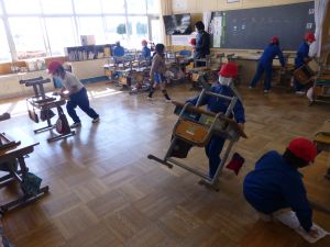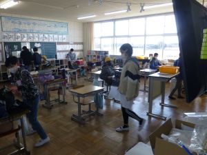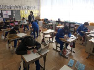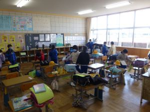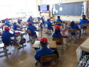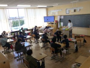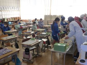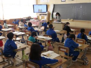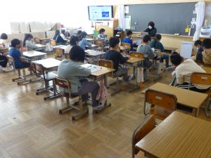 4年生の教室では,静かに行儀よく配膳の順番を待っている様子が見られました。食事のマナーの意味と,コロナ対策の2つの意味で,とても素晴らしい態度だと感じました。このあとの「食事」そして「歯みがき」までを,今後も特に注意深く指導していきたいと思います。