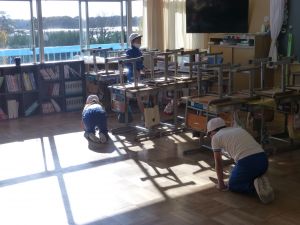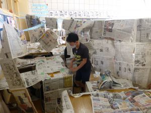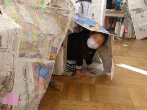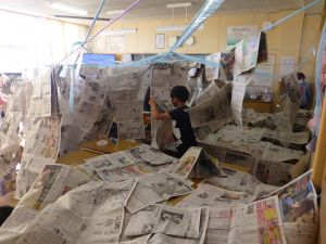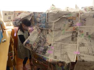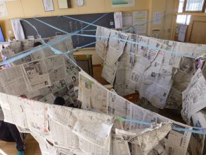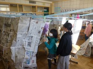午後の4年生は図工(造形)です。みんな目を輝かせて,教室を新聞紙で飾り付けていました。