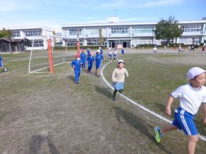 今日はよく晴れた過ごしやすい一日です。業間運動では,児童が元気いっぱい走り回っていました。持久走大会はいよいよ明日です。児童のみなさんには自分の目標に向かって頑張って欲しいと思います。
