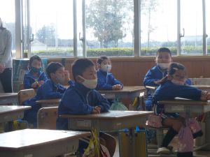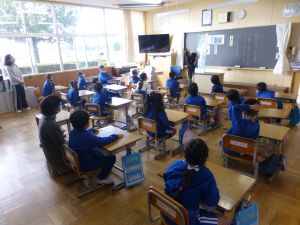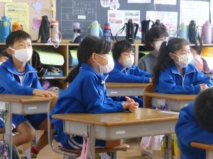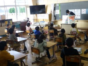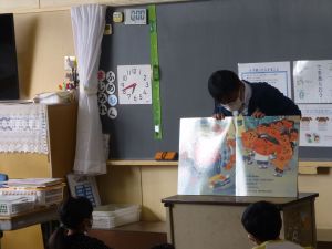 2年生の様子がこちら。担当は教頭先生でした。何のお話でしょうか。大きな絵本ですね。