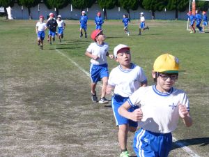 持久走大会が再来週金曜日26日に迫ってきています。 今日は,業間運動として5分間の持久走を行いました。勢いよく走る児童の姿が見られました。