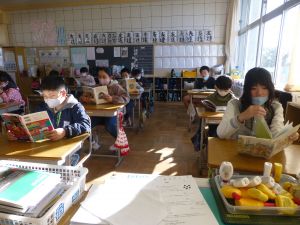 2年生は国語「お手紙」の学習です。今までにお手紙をもらったことがなくて悲しい気持ちのがま君に,かえる君が手紙を送って一緒に喜び合うという,とても素敵な,そしてかわいい友情の話です。登場人物の気持ちをよく考えれば,音読の工夫がいろいろできそうですね。