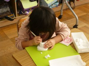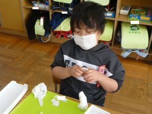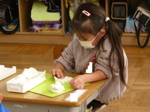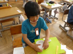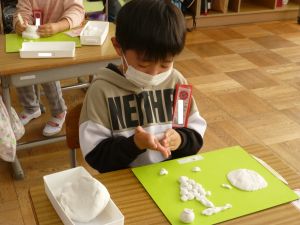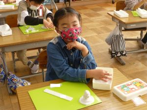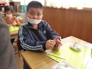 久しぶりに低学年の様子です。 1年生は図工。ねんどで好きなものを作っています。どんなものが出来上がるでしょうか。