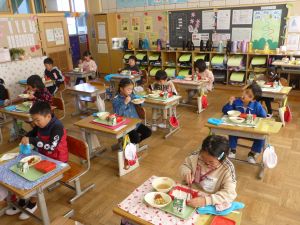 今日の1年生の給食の様子です。