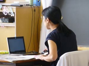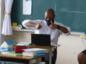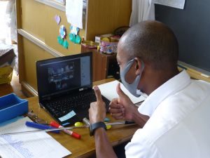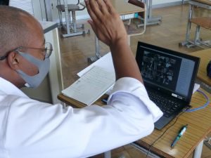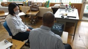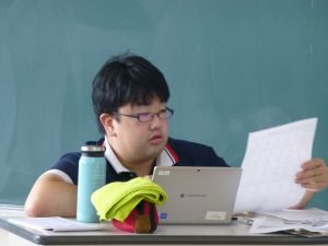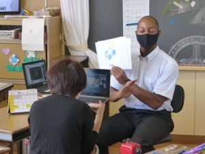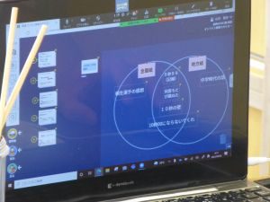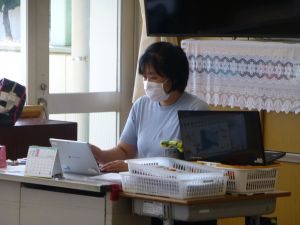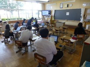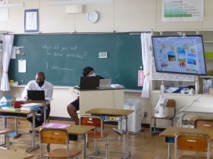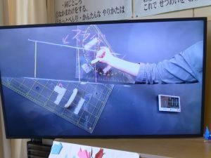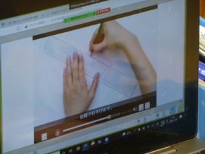 4年生は算数。どうやら作図中です。垂直や平行,台形,平行四辺形,ひし形等の作図が上手にできたでしょうか。こういった単元は,タブレットを用いたオンライン学習などの形が合っているようですね。児童も友達の作図の様子も見て,自分の比べたり確認したりできます。
