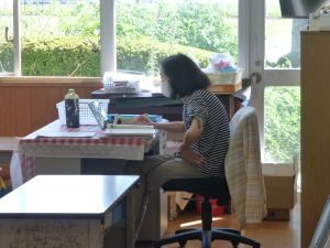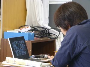 6年生算数です。提出されたノートを担任がチェックしています。