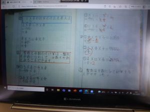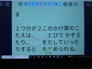 2年生の画面はどうやら算数。かけ算の学習かな。算数の授業のまとめの部分のようですね。
