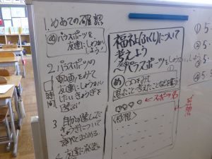 3年生は社会科。スーパーマーケットへの質問を1人5個ずつ考えました。後日実際に近所のスーパーから回答がいただける段取りになっているようです。社会科の授業を通して,まさに「社会」とつながっていきます。