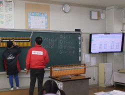 諏訪郵便局長様と鳥栖郵便局長様を講師に迎え、3,4年生がそろばん教室を行いました。