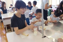 茨城県牛乳協同組合様にお世話になり、1年生が、家庭教育学級でバター作りを行いました。 生クリームをシャカシャカふって クリーム状になったら割り箸でぐるぐる回して すると生クリームがバターとミルクに分かれます! どちらもとっても美味しかったです! パンを用意してくださったので、みんなでできたバターを塗って 「いただきます!」 楽しく美味しいと~っても素敵な時間が過ごせました。 茨城県牛乳協同組合様、ありがとうございました。