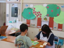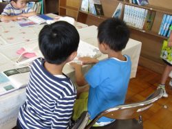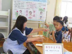 1年生が図書室で本を借りていました。 カブトムシの本、大人の歯の本、眠ることの本、絵本、英語の絵本 みんなそれぞれに好きな本を借りていました。 本の楽しさを十分に味わってほしいです。