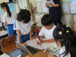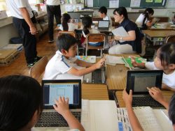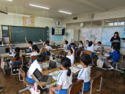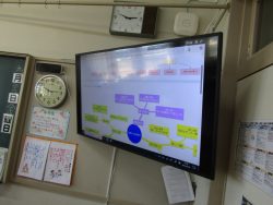 旭南小では、クラスクラウドの研修を積み重ねています。 今日は、子どもたちと共に、全学年でクラスクラウドを活用した授業を行いました。 ICTを活用して子ども同士の対話を深める方法を学んでいます。 1年生は話した内容が文字になる機能を、互いの考えにリアクションマークをつけたりしていました。 6年生は、写真をとってポスターのようにして互いにコメントし合ったり、今の気持ちについて付箋を貼って読み合ったりしました。AI処理機能もついているため、6年生の今の気持ちの中で85%の人が宿題を心配しているなど、様々な分析結果も見られ、とても楽しい授業になりました。