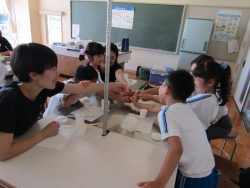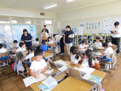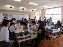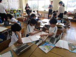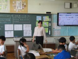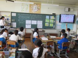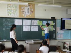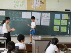 2年生が算数で、研究授業を行いました。 先生たちが、子どもたちにとって楽しく、わかりやすい授業の仕方について互いに学び合いました。 2年生の様々な考えに、「なるほど」と思うことがたくさんありました。 教室には、粘土で作った作品や担任の先生の似顔絵、生活科の探検のまとめなども貼ってあって、楽しく学ぶ様子がうかがえました。