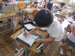 3時間目の教室の様子です! 2年生 生活科のおもちゃづくり 3年生 図工 5年生 書写 です!