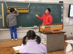 諏訪郵便局長様と鳥栖郵便局長様を講師に迎え、3,4年生がそろばん教室を行いました。 子どもたちは、そろばんで使う、数の計算の仕方の工夫を楽しむことができました。 郵便強調様、お忙しいところ誠にありがとうございました。