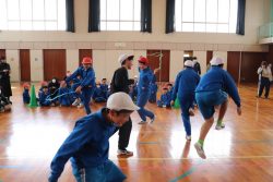 その後ルールを工夫したじゃんけん列車が始まりました。 様々な学年、性別のたくさんの人がつながっている列車の勝ちです! 児童会や高学年のデモンストレーションの後、みんなで楽しみました。 みんなの笑顔が輝いていました。