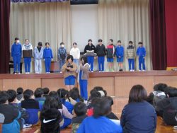 児童会主催の集会が行われました。 いつものおあしすさ運動で始まりました お 大きな声で「おはようございます」 あ 明るい笑顔で「ありがとう」 し 職員室に入る時は「失礼します」 す 素直な心で 「すみません」 さ 最後のあいさつ 「さようなら」