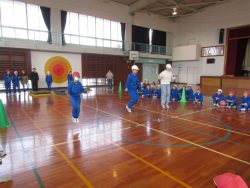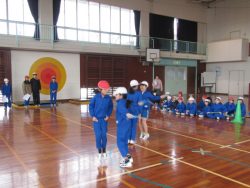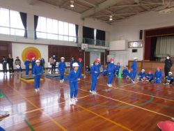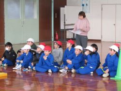 鉾田消防署旭出張所、消防団旭支団の皆様にお世話になり、防災訓練を行いました。 子どもたちは、地震~火災の設定で、発煙筒の煙の中の避難訓練、消防団の放水見学、水消火器訓練、消防車両・救急車両見学、煙体験を行いました。 職員もベル鳴動・通報訓練、初期消火訓練をさせていただきました。 体育館に入ってからは、東日本大震災を実際に経験なさった先生の防災についてのお話。 最後に女性消防団の皆様から、乾燥している今の時期の「野焼き」がどれほど危険かについての寸劇を見せていただきました。 防災についてたくさん学べた一日となりました。 <地震で机の下に避難>