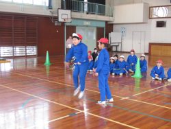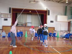 なわとび発表会を行いました。 子どもたちがそれぞれに自分の得意な跳び方、自分の考えた跳び方を発表しました。 発表する子供たちへの声援が体育館に響き、まるで旭南小オリンピック(競わない発表会ですが)のように盛り上がりました。