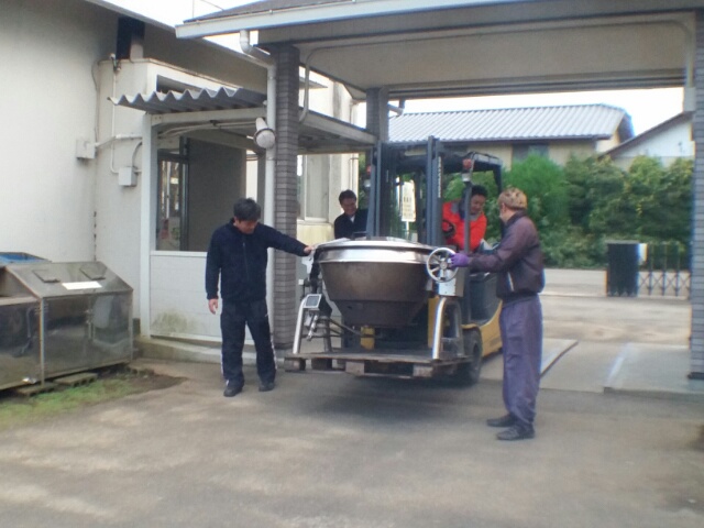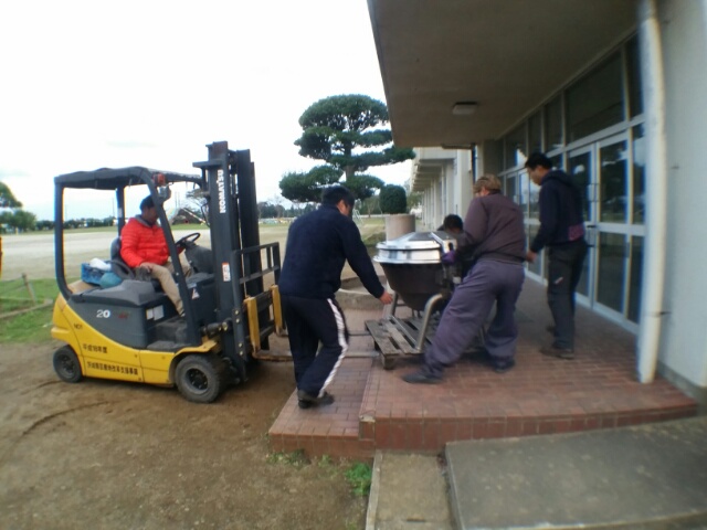 サングリーンさんから、大鍋をお借りしました。PTA の皆さんが運んで、設置してくれました。これで、カレー作りの準備🆗👌