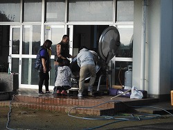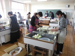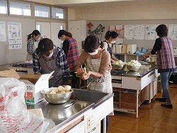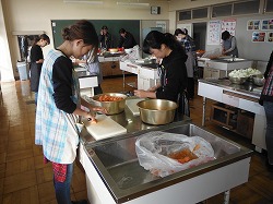今年は「カレー」です。PTAの執行部さん,学年委員さんが,朝から準備にあたっています。家庭科室では,じゃがいも,にんじん,玉ねぎのきざみ。西校舎前では大鍋の準備。