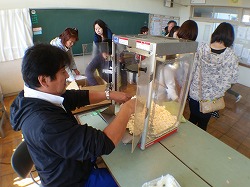 スペシャルの提供となった「ポップコーン」。どんどん来る「おきゃくさん」に,教頭先生がポップコーン屋さんになって,目まぐるしく提供しました。