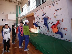 ▼体育館では,ボルダリングと「投げる」運動。スポンジでできたロケットをうまくなげると「ピュー」と音がします。