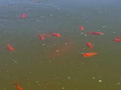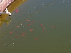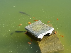 11月3日の「南っ子まつり」のイベントで行った「金魚すくい」。その時の金魚たちは,本校舎前の池に放流しました。ときどき,エサをやりますが,元気にしています。(^o^)丿