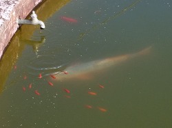 ヒゴイが来ると「逃げろ逃げろ!」とばかりにみんなで避難します。ふだんはほとんど姿を見せない「フナ」もエサに誘われて上がってきます。