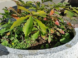 本校舎前の大きな植木鉢で育っている「コナラ」の林。(‘◇’)ゞ 寒くなってきたので,小さいながら「紅葉」が始まりました。