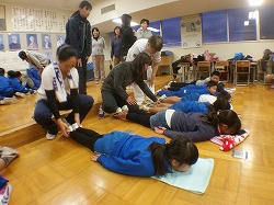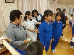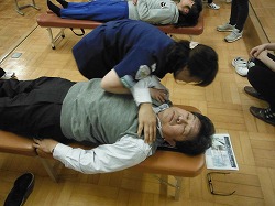 ▲E校長も診断を受けました。「グッ!」っと関節部分を修正(?)してもらい,背骨も「ゴキゴキッ」と戻してもらうと,「あ,楽になった!」とのこと。体の不思議を体感する研修でした。(‘◇’)ゞ