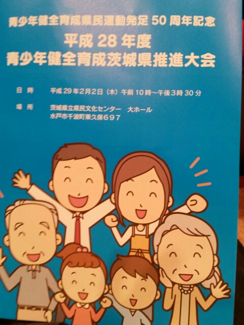 県民文化センターで、青少年健全育成茨城県推進大会が行われました。PTA 会長と校長が参加しました。