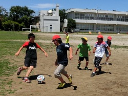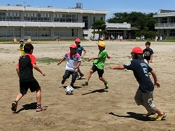 業間の休み時間には、さっそく校庭で「ワールドカップ」です (^o^)